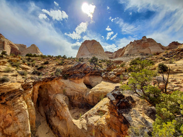 Capital Reef National Park, Utah - a hidden treasure filled with cliffs, canyons, domes, and bridges in the Waterpocket Fold, a geologic monocline (a wrinkle on the earth) extending almost 100 miles.