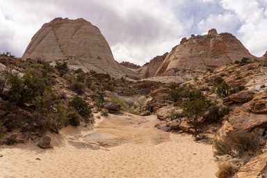 I am envious of the time you had and the hikes you did in Capitol Reef. It is a glorious landscape. I loved your first big photo of Hickman Bridge. Postcard material! Also the first panoramic shot is stunning. Then the shots from the day in t[he Capitol Gorge are Wonderful too. You had that incredible “Utah Blue” sky with incredible cloud formations. It makes me want to stow away in your rig and go with you guys!