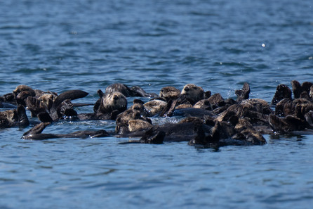 "Otters love to rest in groups. Researchers have seen concentrations of over 1,000 otters floating together. To keep from drifting away from each other, sea otters will wrap themselves up in seaweed, forming something that resembles a raft."