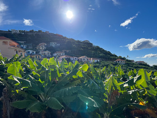 Driving there the road gained elevation and passed numerous terraced gardens which were everywhere we looked. As we got closer we drove through narrow streets with banana trees, many heavily laden with fruit. The southern part of the island is where most of these small yummy bananas are grown.