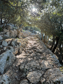 We continued climbing up past the ruins and enjoyed a wonderful Mallorcan brown bread toast with jamón Serrano and cheese and a cold beer from Hosteria del Puig d'Alaró which also offers lodging (they only accept cash). After enjoying our time wandering all around we began our descent and passed several families on our way back down carrying their overnight stuff coming up for the night and since it was New Years Eve we wondered if they would have great views for fireworks!