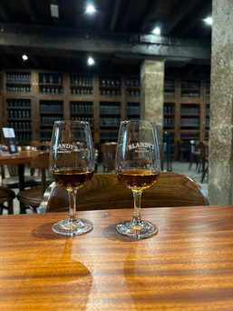 Another time we visited Blandy's Wine Lodge to sample a couple of their old Madeira wines which is a type of wine that's produced here. It's similar to port which is another fortified wine we had in Portugal, but this is a little bit different in that port is aged in barrels or vats and this wine is aged using a heating process (typically gently over three months which results in the sugar caramelizing which gives it a unique flavor & amber color). Another difference is typically port uses red grapes and this is produced with mostly white varieties. It was fun to sit in their old tasting room where we could sample the wines ages 10+ years. We had two varieties of 15 year - dry and semi dry. They were both really good and had a very nice sipping quality to them. They are enjoyed in small quantities typically after dinner as a dessert wine.